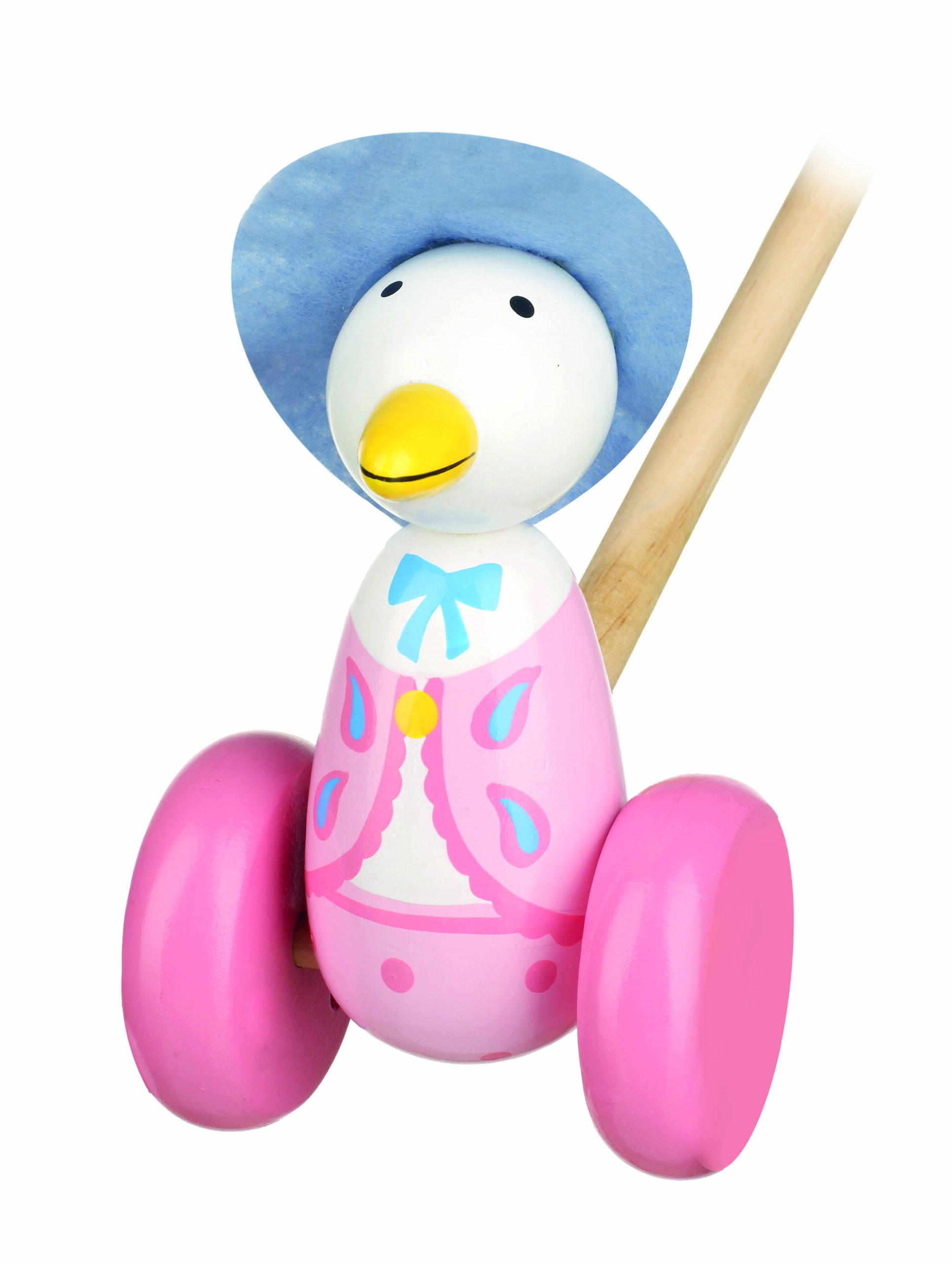 Jemima Puddle-Duck is one of Beatrix Potters best-loved characters. Children are familiar with the classic story of this warm, friendly and forgetful duck and will adore this beautifully crafted push along from Orange Tree Toys…  but watch out for that foxy-whiskered gentleman!